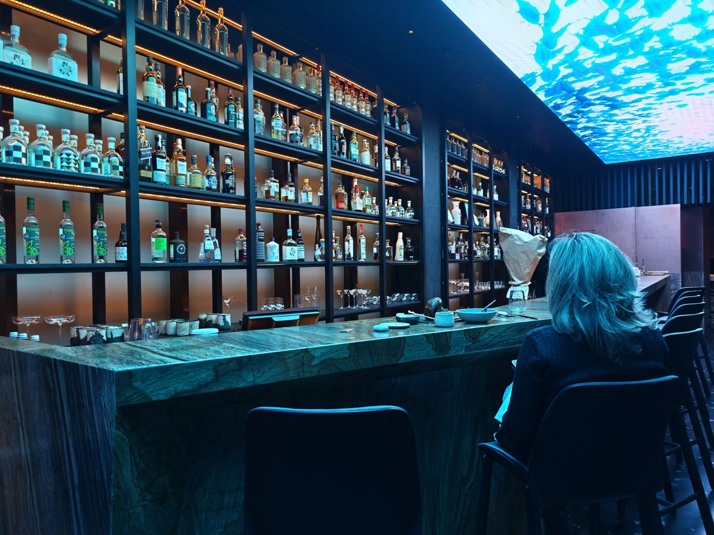 Stepping beyond the phenomenal cuisine and attentive service, Olluco’s overall atmosphere is a triumph. The lighting is set to a soft glow that flatters the elegant décor, highlighting the lush foliage motifs and refined touches scattered throughout the space. The hum of conversation mingles with gentle background music, striking that delicate balance between lively energy and discreet sophistication. Combined with the warmth emanating from the central fireplace, the result is an ambiance that feels simultaneously grand and welcoming. In the bar there is a spectacular LED ceiling that spans the entire space, with changing images or rainforest, flowers, ocean and other visual delights that has an interesting effect on the mood for any given theme.